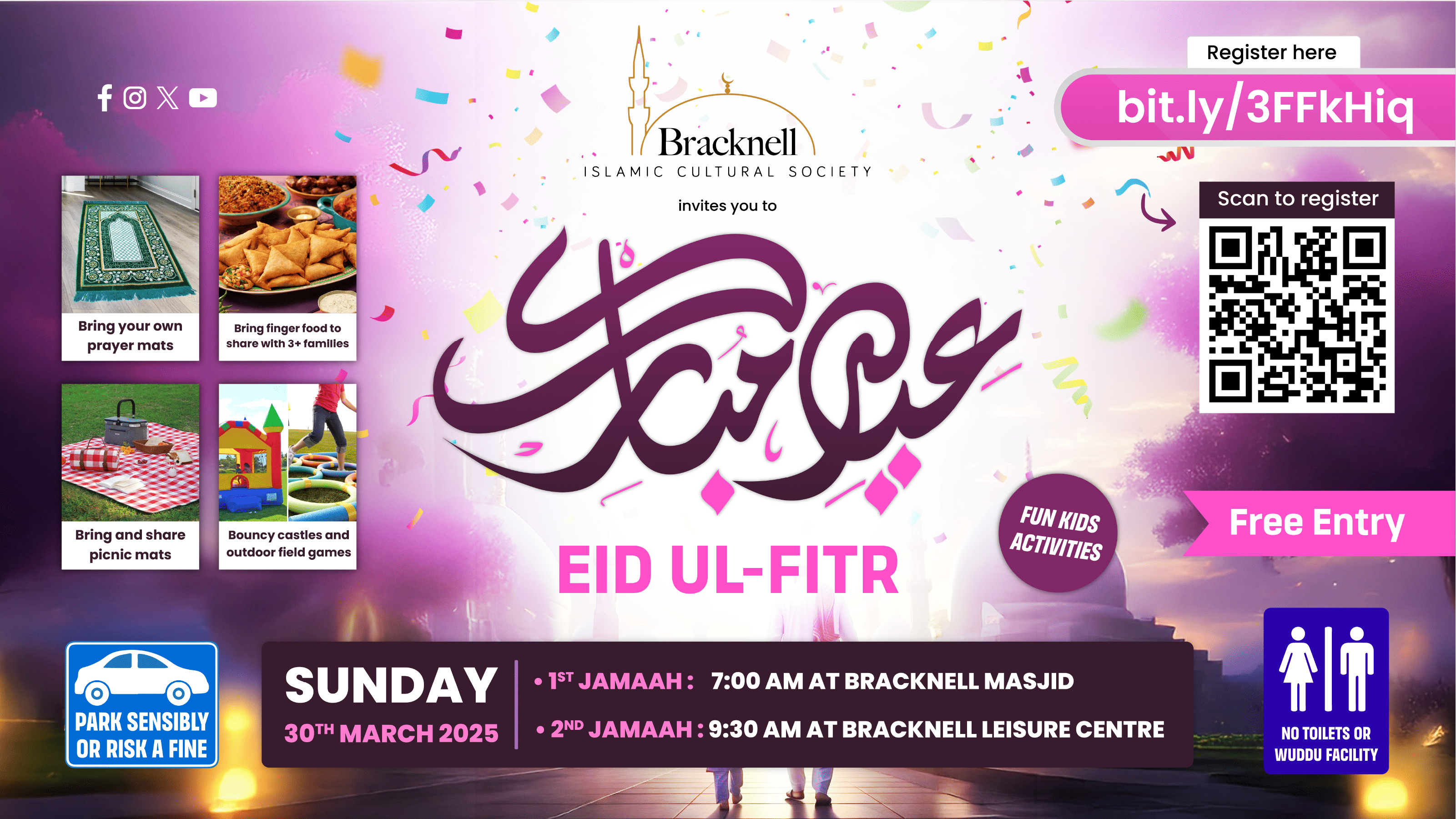 * 1st Jamaah : 7:00 AM at Bracknell Masjid (Parking near Masjid) – Ustadh Hisham