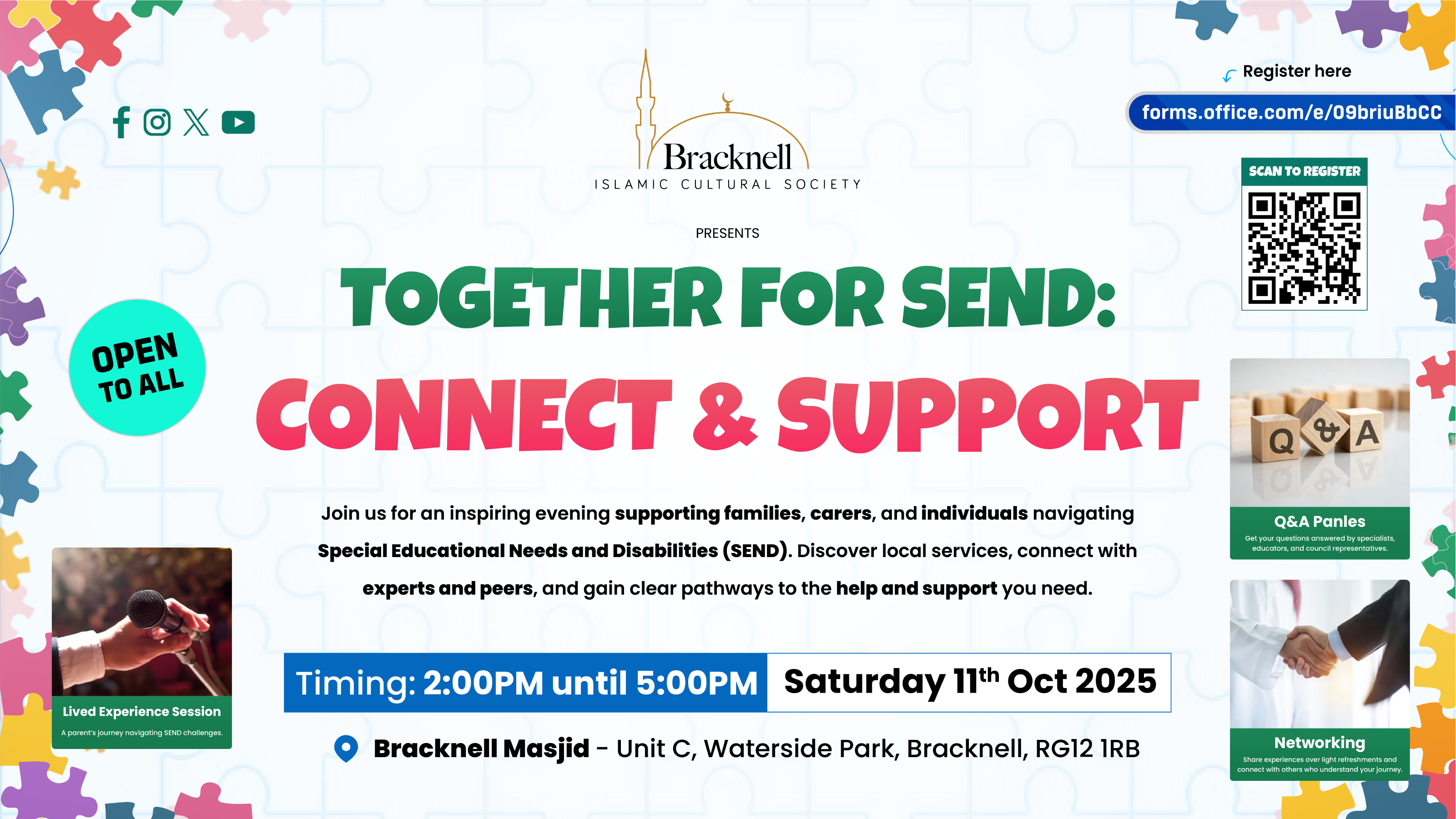 📍 Venue: Bracknell Masjid – Unit C, Waterside Park, Bracknell, RG12 1RB