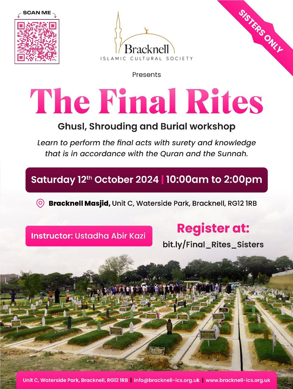 Bracknell Islamic Cultural Society UNIT C Waterside Pk, Binfield, Bracknell, United Kingdom🔊 BICS OFFICIAL ANNOUNCEMENT - BROTHERS & SISTERS FINAL RIGHTS WORKSHOP (GHUSUL, SHROUDING & BURIAL) - REGISTER NOW FOR COURSE WHICH IS IN HIGH DEMAND🔊 السلام عليكم ورحمة الله وبركاته بِسْمِ اللَّـهِ الرَّحْمَـٰنِ الرَّحِيمِ The Final Rites workshop is designed to teach us how to complete the Ghusl, Shrouding and Burial of a loved one […]